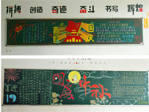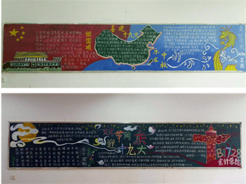 假期前夕,会计学院团委便组织各班开展了“迎国庆、贺中秋,青春喜迎十九大”主题黑板报评比活动,引导同学们关注国家大事,传承中国传统文化,号召同学们用青春的力量共筑中国梦。