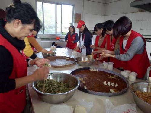 下了车,志愿者们稍微适应了一下环境之后,就进入了自己的岗位。义工们和几位青年志愿者们进入了后厨,挽起了袖子,分好饺子馅和饺子皮,开始了工作,几乎每个人包出的饺子形状都不一样,各有各的特色,还没下锅,就让人有了想吃的冲动。另一边,其他志愿者们都纷纷拿出自己准备好的节目,磨拳擦脚,将自己的表演顺利的在老人们面前展现出来,一些老歌,勾起老人们的回忆,一些舞蹈,激起老人们上台与志愿者们共舞,一些小品,逗得老人们笑弯了眼。表演结束了,志愿者们亲手包好的饺子也出锅了,敬老院里的所有人都沉浸在饺子都美味当中,因为这饺子包的不仅仅是馅,也包涵了志愿者们的爱心。