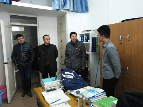 3月8日上午,经管学院院长项益才、党委书记花金龙、副书记刘羲之与经管院团委学生科、教务科相关负责人一起走访了学生宿舍。同学们热切欢迎学院领导与老师的到来,老师们细心地询问大家寒假有何收获、新学期有何计划,叮嘱同学们要迅速转变进入学习状态、整理好宿舍环境卫生、加强安全意识。