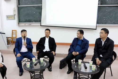 随后,张彦涛、齐彬、刘伯、胡顺玉四名校友应学生邀请,参加了电子商务学院第四期创业微讲堂“学长对我说”的活动。在活动中,四位校友与学生进行了面对面的交流和互动,分享自己的创业经历与感悟,激励同学们在校期间认真学习,认识自己,沉淀自己,保持激情,怀抱梦想,做一个有价值的人。