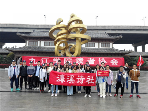 面朝大海,春暖花开。自古以来,诗人们以其豪迈的激情和生花妙笔,为我们留下了近16000余首歌咏庐山的诗词歌赋!九江悠悠万古情,古人行尽今人行。3月24日上午,由读者协会和濂溪诗社联合举办的“九派诗廊走读活动”如期举行,本次活吸引了近30位同学参与。