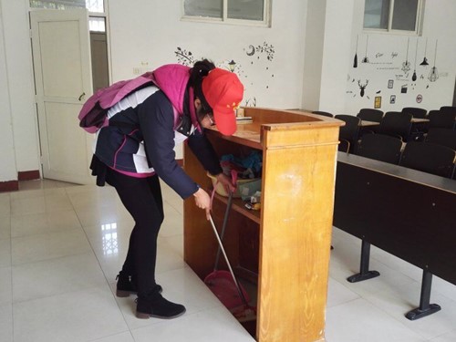 活动中,入党积极分子主要负责会计学院教学楼立信楼的清扫。他们井然有序地进行工作,不怕脏、不喊累,相互配合。清扫活动持续了一个多小时,一间间教室被积极分子们打扫得一尘不染,桌子上的小广告也彻底得到清理。积极分子们用自己的实际行动积极为同学服务,为校园增添一份清新,一抹明亮。
