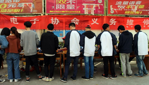 为弘扬雷锋精神,培育和践行社会主义核心价值观,3月28日下午,电子工程学院学生党支部、社会实践部、电子协会联合在三食堂广场开展义务维修活动。