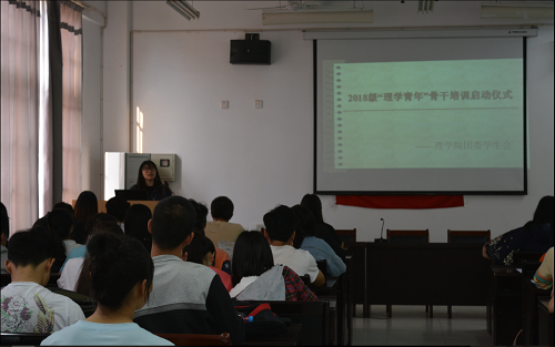 为进一步提高理学院学生干部们的综合素质和工作能力,更好的发挥学生干部先锋模范带头作用,理学院于4月11日下午3:40在文友楼312会议室召开2018级“理学青年”骨干培训启动仪式。理学院党委书记邹国辉、学生科科长周梓哲、团委副书记李琦参加了会议。