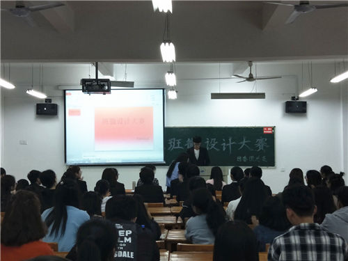 活动开始,在主持人简短有力的开场白后,各班派出代表讲解了各自班级所设计的班徽内涵,通过PPT的形式向观众们展示了班徽图片及简介。然后,在讲解员们精彩的解说下,不同班级班徽的构图要素、象征意义和中心思想一一为大家所了解,赢得在场观众一次又一次热烈的掌声。最后评委们根据图案设计、解说效果等各个方面进行了细致的点评,并为在场的选手和观众,带来了不一样的精彩。本次大赛在观众热烈的掌声中落下帷幕,A1731班赢得桂冠。