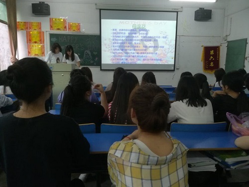 活动在一段关于母爱的温情视频的播放中拉开帷幕,之后向同学们介绍了母亲节的由来以及母亲花等相关知识。同学们在此过程中不仅了解了母亲节的发展历程,也对母爱流露出更多的感恩与敬畏之情。在主持人的鼓励下,同学们认真填写着事先准备好的问卷与明信片,纷纷表达了对母亲的浓浓爱意。同学们通过写纸条回温与母亲之间的有爱小事,朗诵歌颂母爱的诗歌,学会在点滴中感恩母亲。