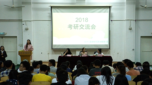 为提高同学们的考研意识,鼓励同学们积极投入学习生活,在低年级阶段就明确考研目标,提前做好考研准备。5月31日晚,经管学院学习部在文友楼三楼报告厅举行2018考研交流会,特邀熊珊、巢嘉会、杨豫鑫三位成功考取研究生的同学为大家分享考研基本经验。