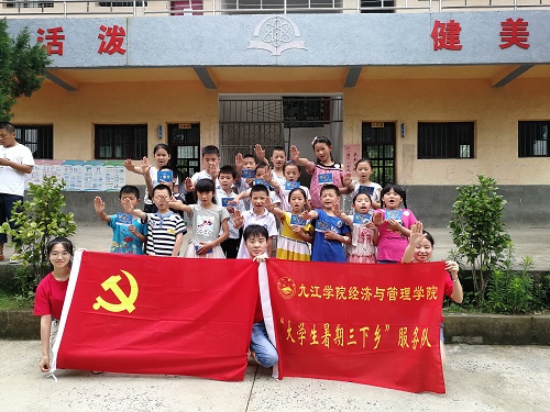 7月5日,经管学院暑期“三下乡”国情社情观察团的队员们于逸夫图书馆集合,在经管学院熊志老师和李海老师的带领下,经过两个多小时的艰辛路程,车辆缓缓驶进彭泽县天红镇,抵达本次暑期“三下乡”社会实践的第四站--天红镇大港村大港小学。