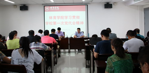 会议就体育学院下一阶段深入学习贯彻学校第一次党代会精神进行了部署,要求全体党员和教职员工要以学校第一次党代会成功召开为契机,继续深入学习领会习近平新时代中国特色社会主义思想、党的十九大精神和学校第一次党代会精神,统一思想、把握机遇、应对挑战,扎实推进学院各项工作,为把学校建设成为“特色鲜明区域领先的综合性应用型大学”而努力奋斗。