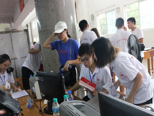 9月3日下午,迎新工作正式开始,各志愿者们积极为新生家长和新生服务。行李存放处、报道现场、宿舍安排处等报道环节处处可以看到电商志愿者的身影,他们热情、周到、高效、耐心的对新生们讲解报道流程,引导他们顺利完成报道的各个环节,他们的服务也得到了2018级新生家长及同学的认可。学院院长郑祚双、党委书记丁文林也多次来到报道现场指导迎新报名工作。