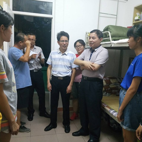为进一步了解新生入校动态,掌握新生入校情况,9月5日晚,机材学院院长张德勤,党委书记陈胜才,团委、学生科负责人及大一年级各班班主任、辅导员老师在2018级助理辅导员的陪同下,来到学生公寓6栋、25栋看望2018级新生。