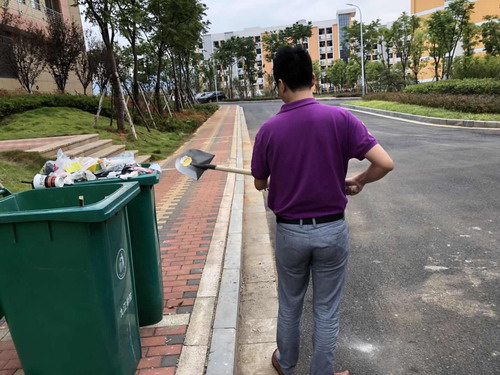 9月13日下午,艺术学院党政班子成员和各科室工作人员一起参加了环境整治活动。