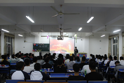 活动中,团支书以PPT的形式带领着同学们见证一幅幅国家飞速发展的宏图,聆听了一首首振奋人心的颂歌,所有的视觉听觉冲击、增强着同学们的爱国情怀。接下来,同学们踊跃上台抒发紧扣时代脉搏、青春梦,将红色正能量注入到学习生活的氛围中去,强化了同学们的责任感和使命感。