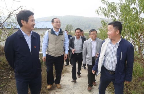 随后,张书记、殷副院长与柴桑区政协袁主席、李秘书长一起,在乡党委张书记的陪同下前往村级特色扶贫产业——水蜜桃种植基地实地调研。乡党委张书记具体介绍了枫树村扶贫产业目前的发展情况和规模,详细阐述了未来几年要结合枫树村现有产业重点打造特色乡村旅游的发展规划。殷副院长听后充分肯定了枫树村产业发展的成果,对枫树村未来的发展规划表示认同,他要求医院驻村工作队一定要积极配合村干部,在乡党委的正确领导下,为枫树村的发展献策献力;他还表示只要大家能够找准脱贫致富的好路子(比如水蜜桃深加工),附属医院一定会尽全力支持。