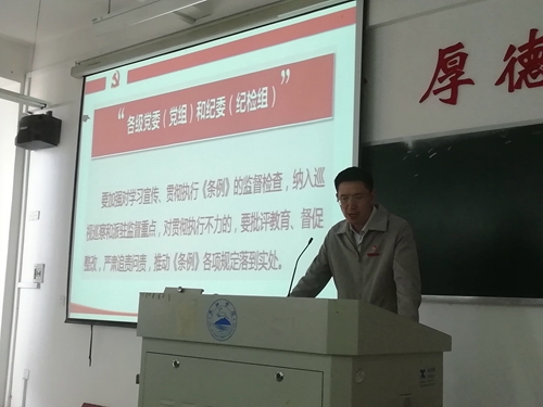 10月24日下午,经管学院在义丰楼501教室召开党员会议,集中学习贯彻新修订的《中国共产党纪律处分条例》。经管学院全体党员参加了学习,会议由党委书记花金龙主持。