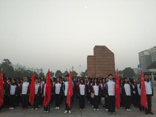 11月26日早晨,伴着清晨的薄雾,外国语学院全体大一新生在学校西门举行升旗仪式。