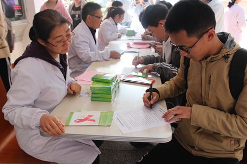 活动现场,通过悬挂横幅、摆放宣传展板、设立咨询台、发放宣传册、艾滋病小读本、调查问卷、自行车车队环校骑行等形式开展活动,同时医务人员向过往前来咨询的同学们就预防艾滋病的相关知识进行了现场讲解,了解艾滋病的传播方式、预防与检测办法,并现场为同学们免费采血检测,使同学们能正确树立人生观、价值观,养成健康的生活方式,更好的维护身体健康。