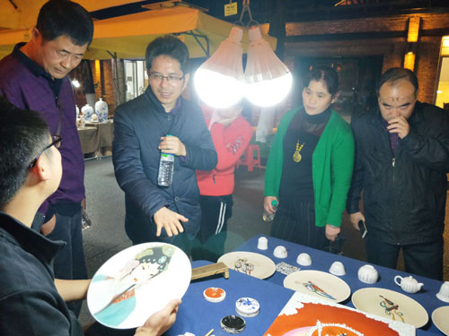 由窑炉车间改造的“邑空间”,是陶溪川为大学生提供的优质创业平台。在陶溪川的街头,教工二支部一行,参观了大学生自主创业的文创摊位,并与大学生亲切交流。
