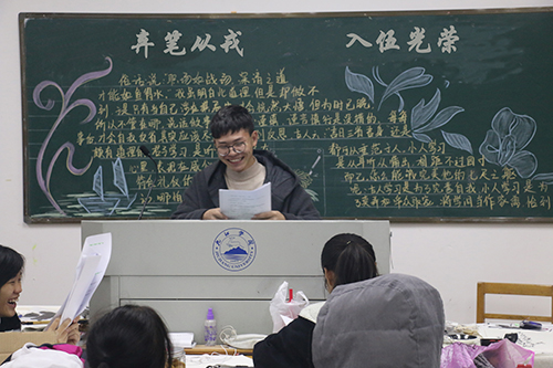 12月5日晚,艺术学院在各班教室开展大学生参军入伍宣传主题班会,主题班会由各班班长主持。